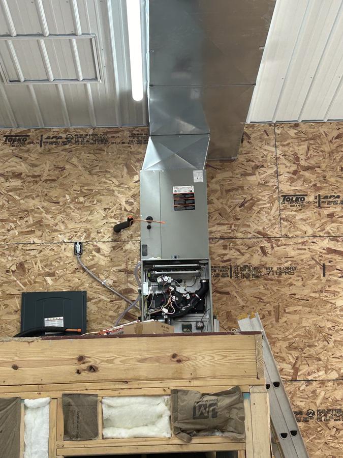 This was an American Standard 5-ton system with all new duct work and Sensi Wi-Fi thermostat in a newly constructed pole barn.